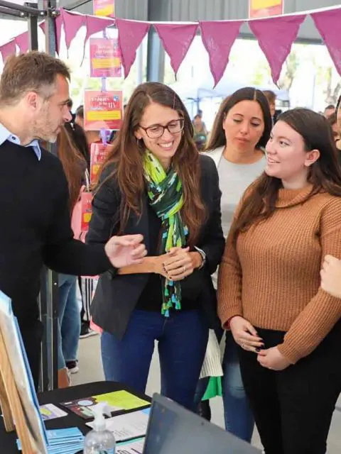 Recorrieron distintos talleres y stands de la jornada con jóvenes, donde acompañaron y dialogaron con estudiantes de los últimos años de la secundaria.