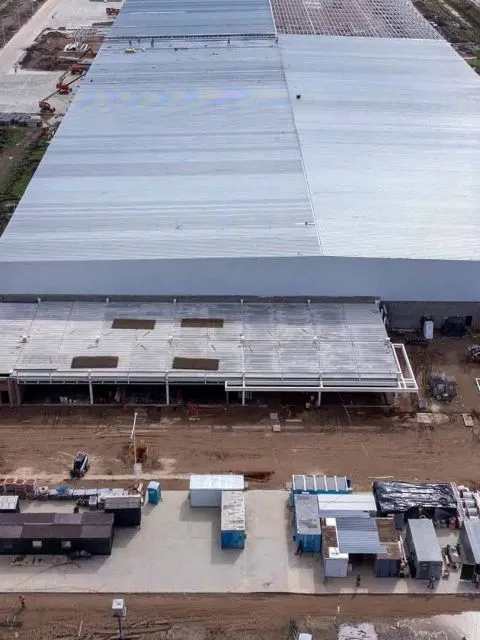 A siete meses del comienzo del desarrollo de la obra, la construcción de la planta avanza según lo acordado y ya se encuentra en la etapa de “montaje de estructura”, que consiste en el cierre de la nave industrial para que pueda comenzar la instalación de máquinas de producción de Whirlpool. La tercera y última fase, que será de conexión a instalaciones y cierre del edificio de oficinas, estará finalizada entre mayo y junio de este 2022.