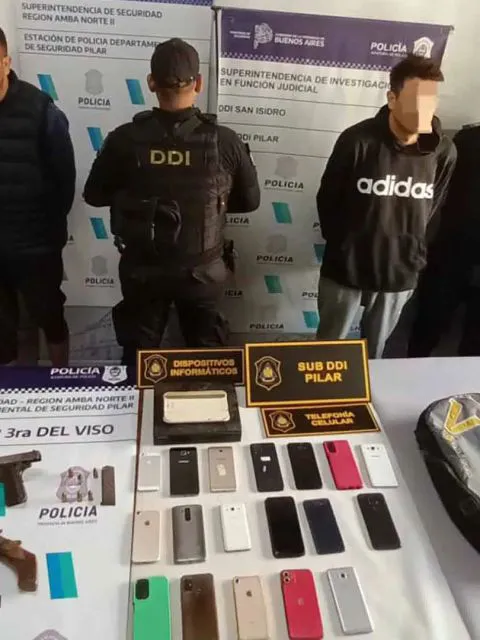 En Mercedes de las Carreras al 8400, la policía también secuestró un teléfono celular LG y, por último, en la calle Florida, se secuestró un cartucho intacto calibre 9 milímetros Luger, 11 celulares y una Tablet.