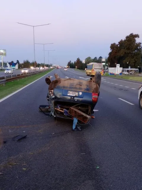 El hecho se registró poco antes de las 20, cuando por motivos que aún son materia de investigación, un automóvil Chevrolet Corsa (patente HKT-641) perdió el control, impactó contra la banquina y terminó volcado sobre los carriles rápidos de la autopista.