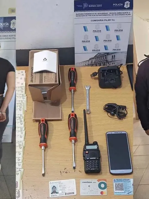 Durante la requisa del vehículo, la policía localizó el equipo inhibidor de señal marca Boafeng, cuatro teléfonos celulares y diversas herramientas de corte utilizadas para ultrajar vehículos. Además, fue secuestrado dinero en efectivo y documentación de los ladrones.
