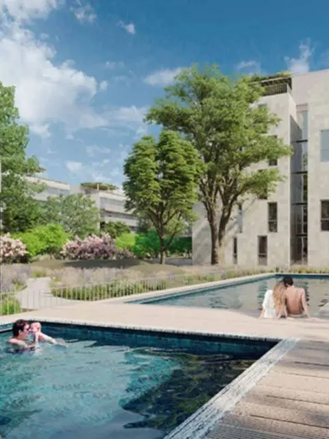 San Gerónimo se extiende en un predio de 3,5 hectáreas rodeadas de naturaleza, con un parque arbolado de 20.000 metros cuadrados que alberga una variada selección de especies, como pinos, eucaliptos, palmeras y olivos. Esta arquitectura en sintonía con la naturaleza crea un entorno único donde los residentes pueden disfrutar de un ambiente tranquilo y relajado.