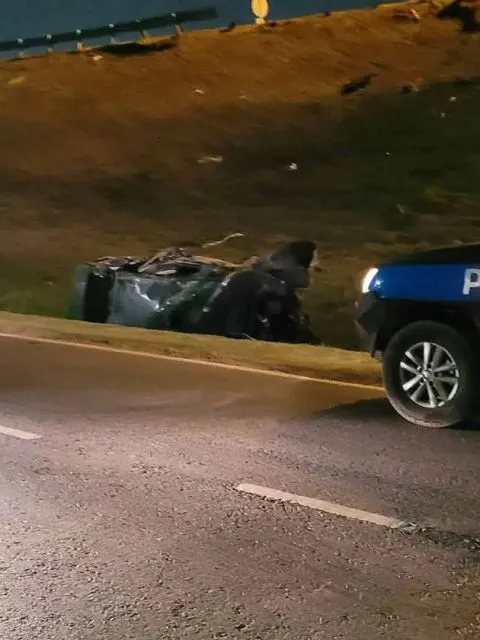 Un joven de 20 años perdió el control de su auto cuando viajaba por Panamericana a la altura de Caamaño, rompió el guardrail y cayó por el terraplén hacia una zanja sobre la Colectora.