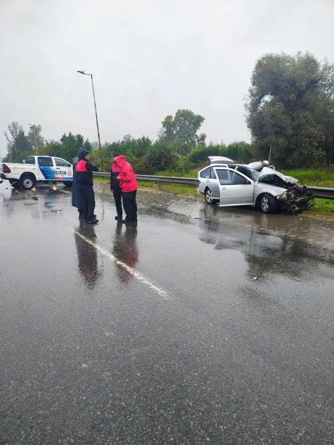 El siniestro se produjo en medio de una intensa lluvia, cuando un automovilista de 32 años perdió el control de su Peugeot 207 y terminó impactando contra el guardrail. La situación no terminó allí: minutos después, mientras un móvil del Comando de Patrulla intervenía en el lugar, un Volkswagen Bora colisionó contra la parte trasera lateral del patrullero, generando un choque en cadena.