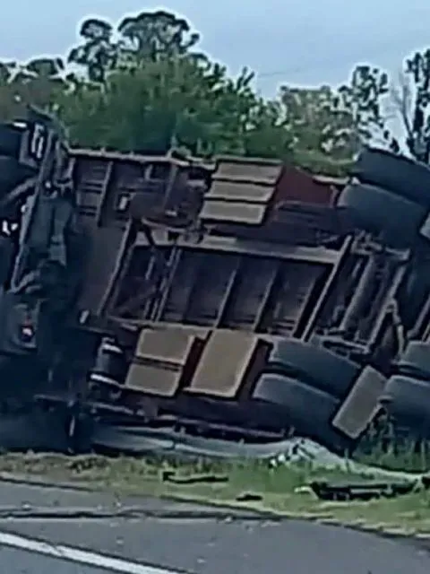 Un camión volcó y embistió a un ciclista que se encuentra en estado reservado