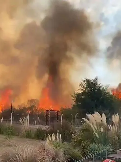 Grandes llamas son parte de un voraz incendio de pastizales que se produjo en las inmediaciones del kilómetro 12 de la Ruta 25, camino a Moreno, a la altura del country Boca Ratón.